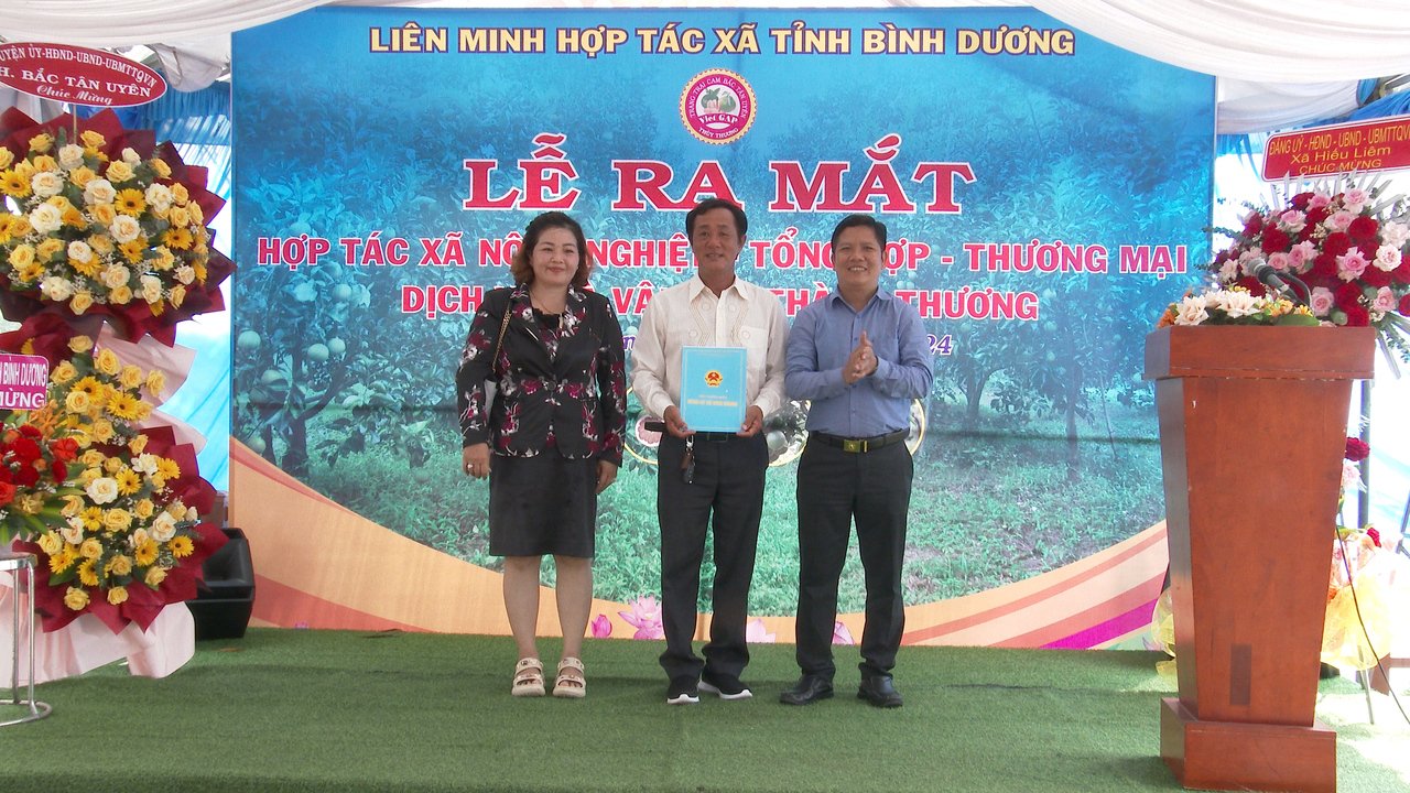 Trong chương trình đại diện thành viên HTX Nông nghiệp - Tổng hợp – Thương mại – Dịch vụ và vận tải Thành Thương đã báo cáo sự hình thành và ra đời của Hợp tác xã; Thông qua Nghị quyết của Đại hội thành viên; Thông qua Kế hoạch SXKD giai đoạn 2024 – 2029. Theo đó HTX Nông nghiệp - Tổng hợp – Thương mại – Dịch vụ và vận tải Thành Thương có địa chỉ tại ấp Chánh Hưng, xã Hiếu Liêm, huyện Bắc Tân Uyên. HTX hiện có 8 thành viên do ông Lâm Thành Thương làm Chủ tịch Hội đồng quản trị, kiêm Giám đốc HTX. Với số vốn điều lệ ban đầu là 3 tỷ đồng, mỗi thành viên góp vốn từ 200 đến 600 triệu đồng, đăng ký hoạt động với 120 ngành nghề chủ yếu trong lĩnh vực nông nghiệp.
