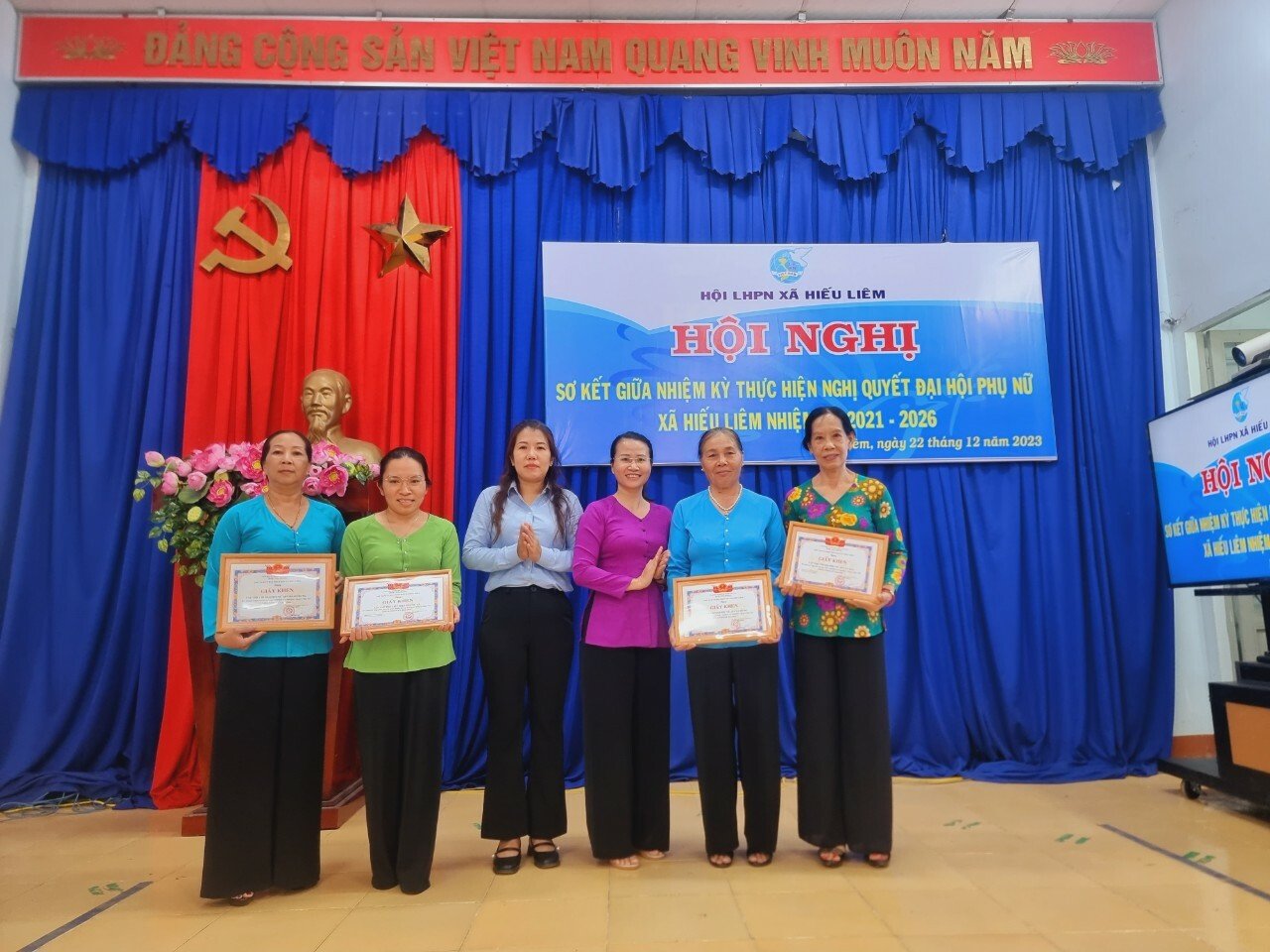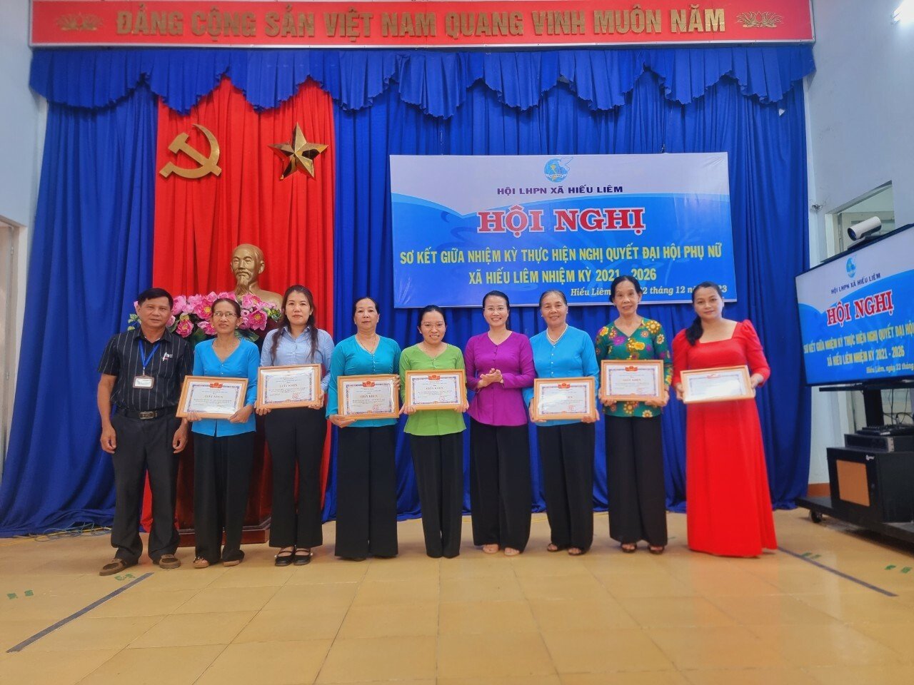 Chiều ngày 22 tháng 12. Hội LHPN xã Hiếu Liêm tổ chức sơ kết giữa nhiệm kỳ thực hiện Nghị quyết Hội LHPN xã 2021 – 2026. Tham dự có đồng chí Lê Nhật Linh - PCT Hội LHPN huyện, đồng chí Nguyễn Phước Thiện – PBT Đảng ủy – Trưởng khối vận, BTT UBMTTQ VN xã, các ngành, đoàn thể, đại diện hai nhà trường, các đồng chí trong Ban chấp hành Hội phụ nữ, các đồng chí là cán bộ, chi tổ hội và 50 hội viên phụ nữ tham dự.