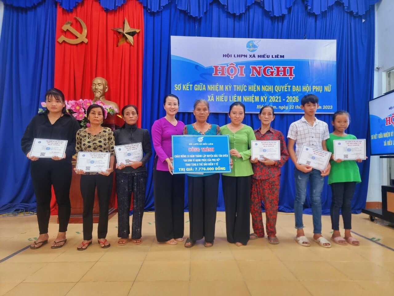 Cũng tại hội nghị, Hội LHPN xã trao công trình chào mừng 10 năm thành lập huyện Bắc Tân Uyên với tổng trị giá hơn mười triệu đồng gồm Công trình hỗ trợ cây giống phân bón và Công trình trao tặng 08 thẻ BHYT cho hội viên có hoàn cảnh khó khăn trên địa bàn xã.