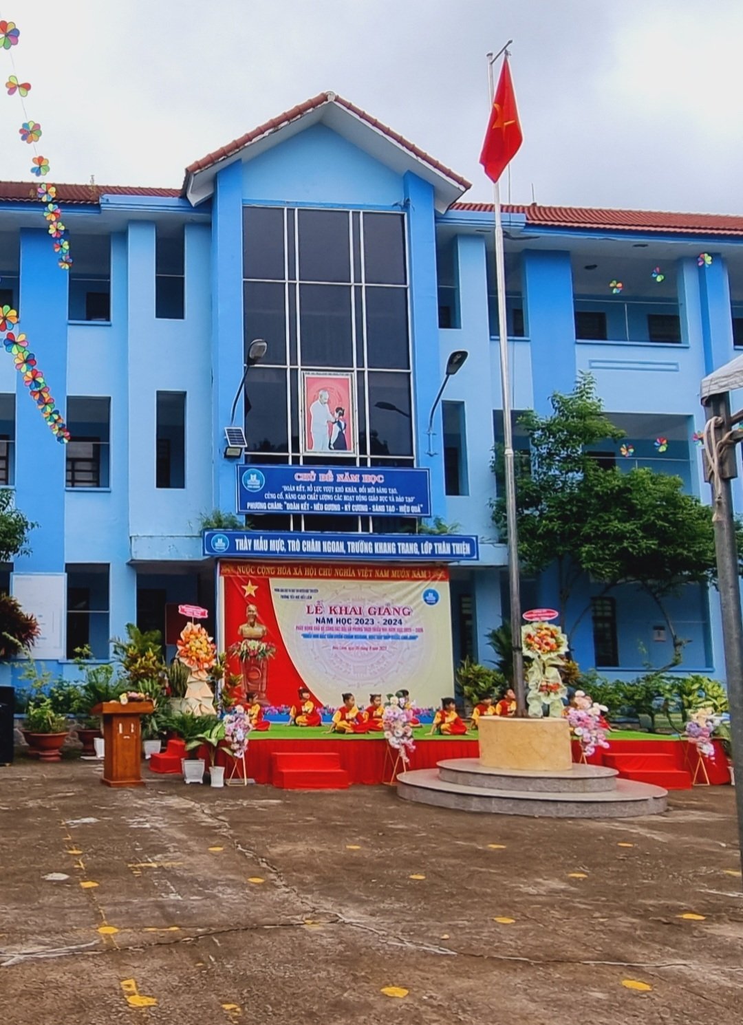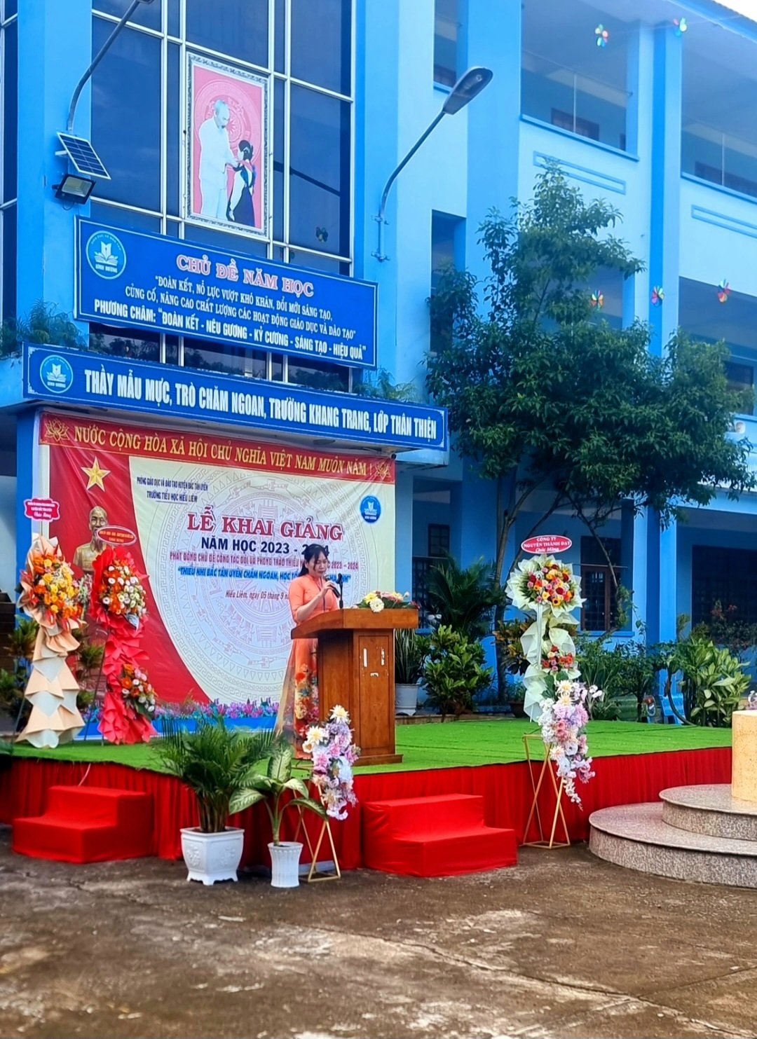 Thay mặt địa phương Ông Nguyễn Minh Tuấn – Phó chủ tịch UBND xã đọc thư chúc mừng của Chủ Tịch nước gửi đến các em học sinh nhân dịp năm học mới, đồng thời Cô Đặng Thị Thùy Dung, Hiệu Trưởng trường thông qua diễn văn khai giảng năm học mới 2023 – 2024.