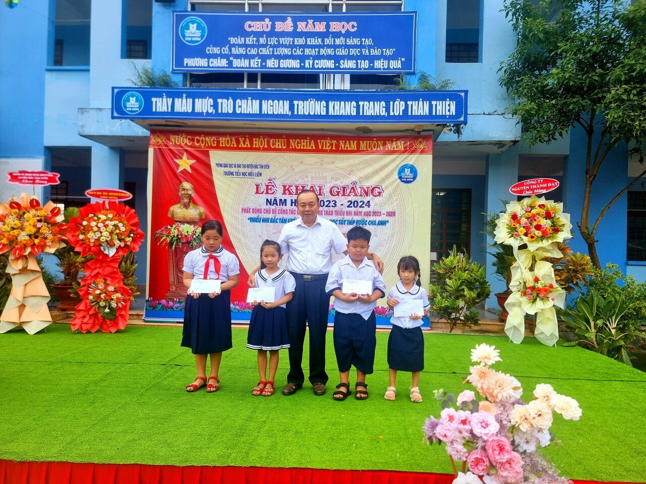 Tại buổi lễ lãnh đạo huyện đã trao học bổng cho 04 em học sinh có hoàn cảnh khó khăn, trẻ mồ côi, khuyết tật và con bệnh nhân nghèo đến trường tổng số tiền 4 triệu đồng do quỹ vì người nghèo huyện Bắc Tân Uyên tặng.