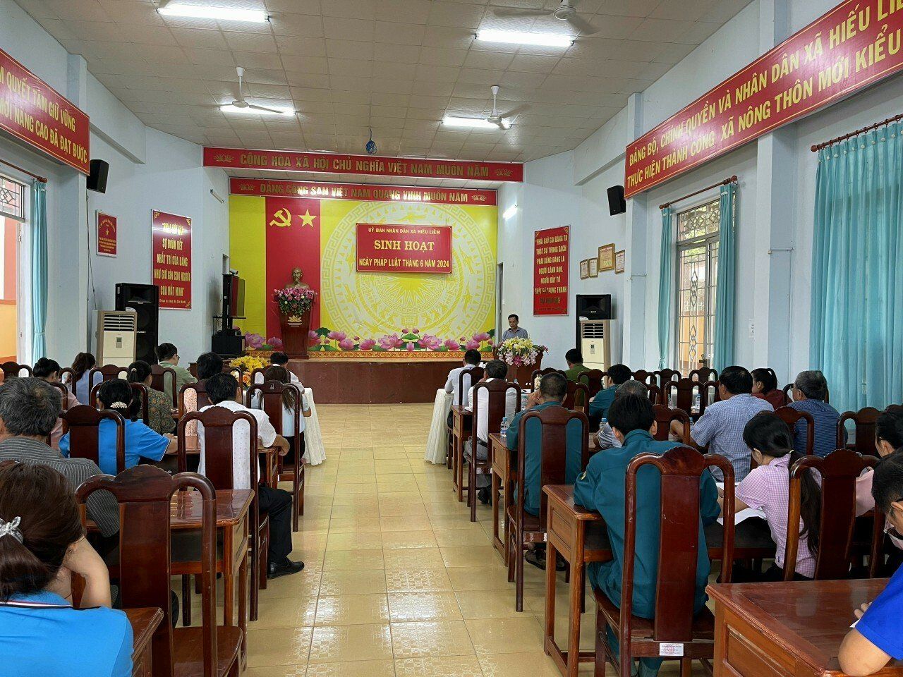 Chiều ngày 07/6/2024 UBND xã Hiếu Liêm tổ chức sinh hoạt ngày pháp luật tháng 6. Tham dự có ông Nguyễn Trọng Nhân – Bí thư Đảng uỷ, Chủ tịch HĐND xã; ông Mai Đức Quý - Chủ tịch UBND xã; bà Trần Thị Diệu Hiền - Chủ tịch UBMTTQ xã; ông Nguyễn Thanh Tuấn – PCT. UBND xã chủ trì hội nghị, cùng toàn thể cán bộ, công chức, người hoạt động không chuyên trách xã, các ngành, đoàn thể, trưởng ban điều hành, Trưởng ban công tác Mặt trận ấp, các chi, tổ hội, tổ nhân dân tự quản 3 ấp.